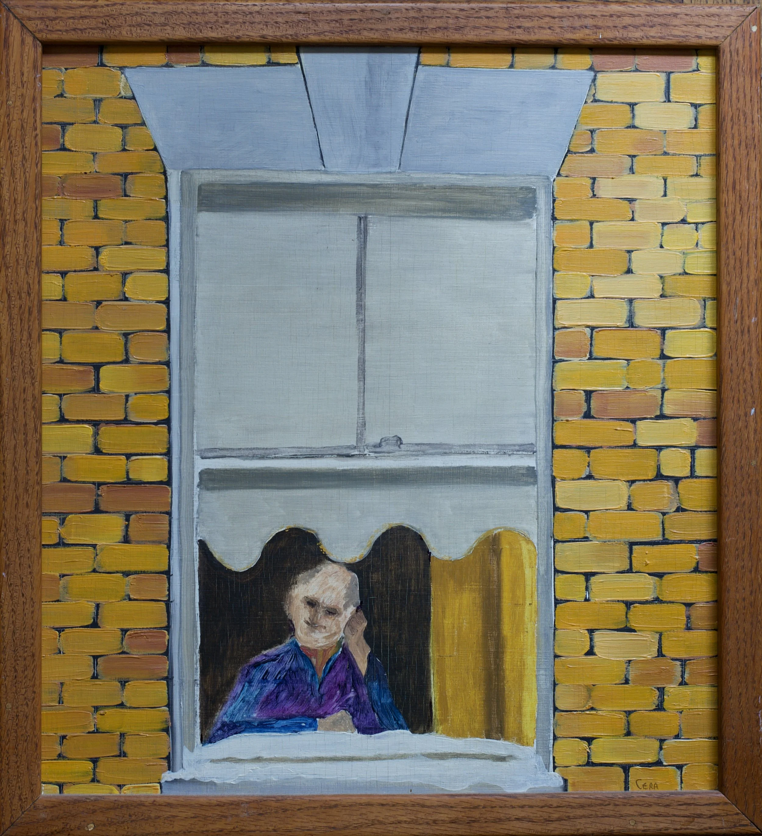 'Boston NorthEnd Woman' Oil on Wood Panel 17" x 18.5" 1974. This is one of a pair with the father, the other.
